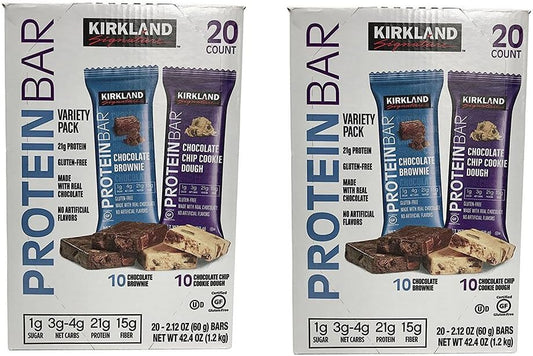 Kirkland Signature Protein Bar Variety Pack Chocolate Brownie and Chocolate Chip Cookie Dough 20 Count 42.4oz 1.2KG (Two Boxes)
